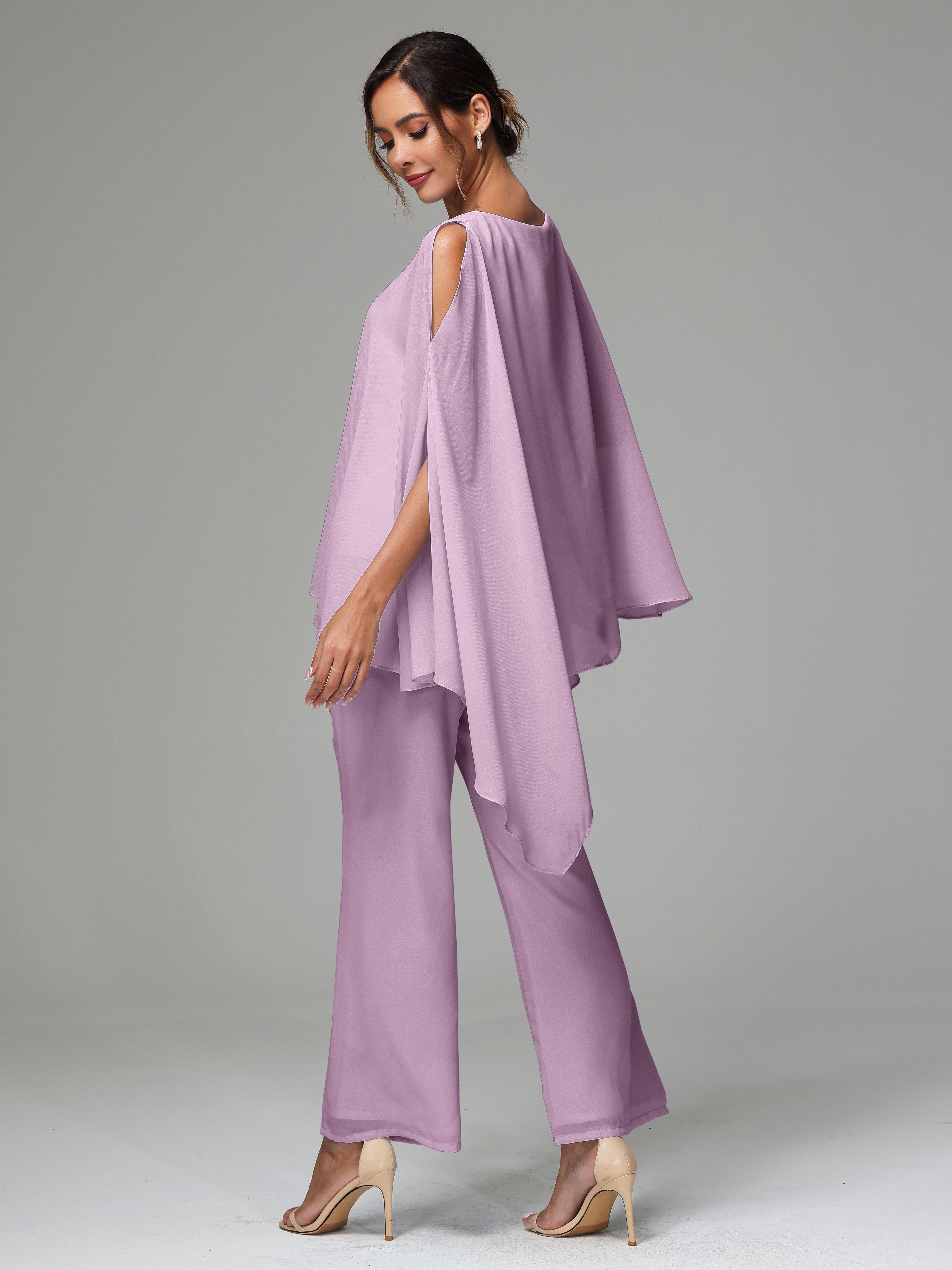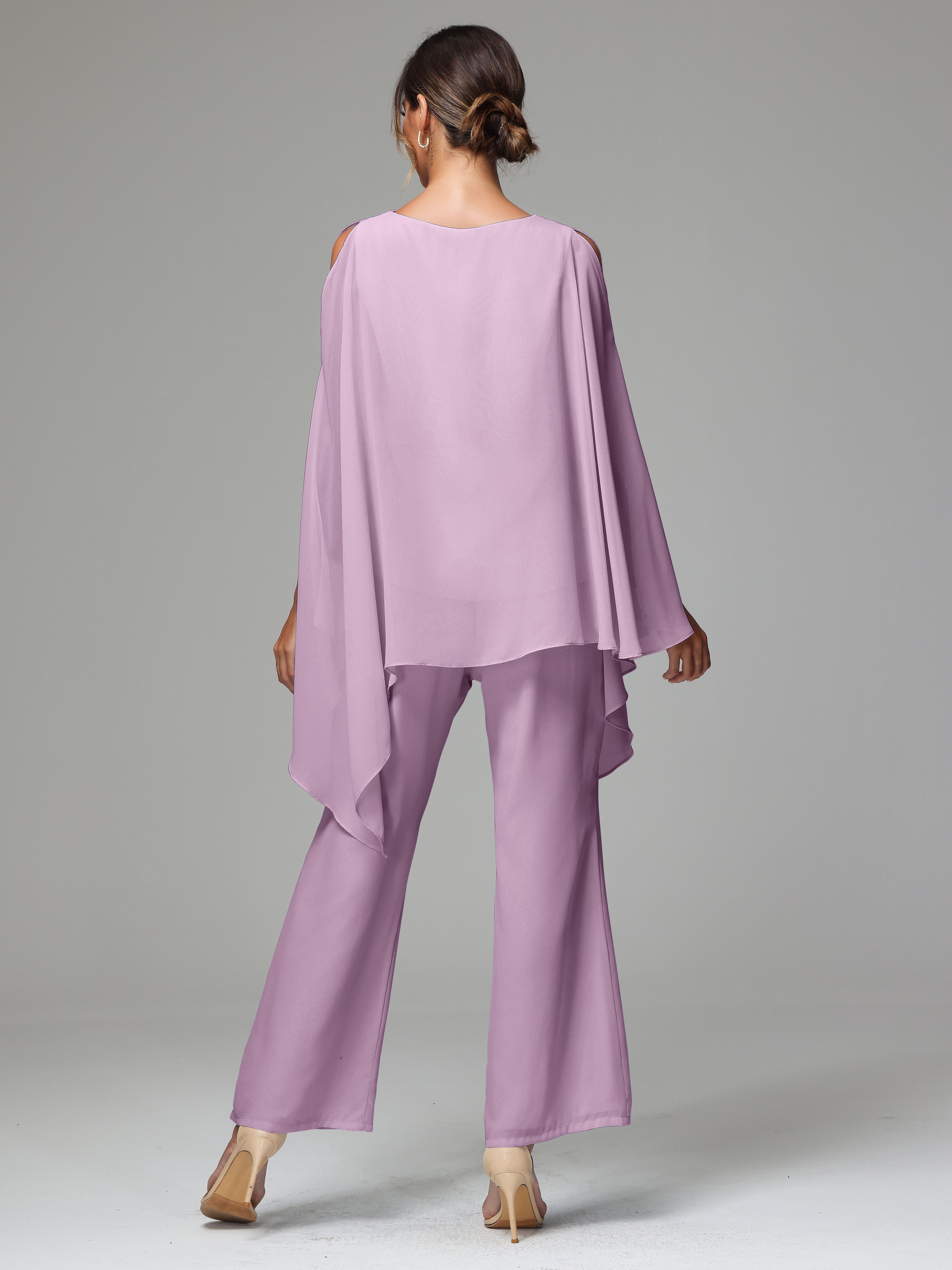 2 Pieces Flowy Split Sleeves Chiffon Mother Of The Bride Dress Pants Suits