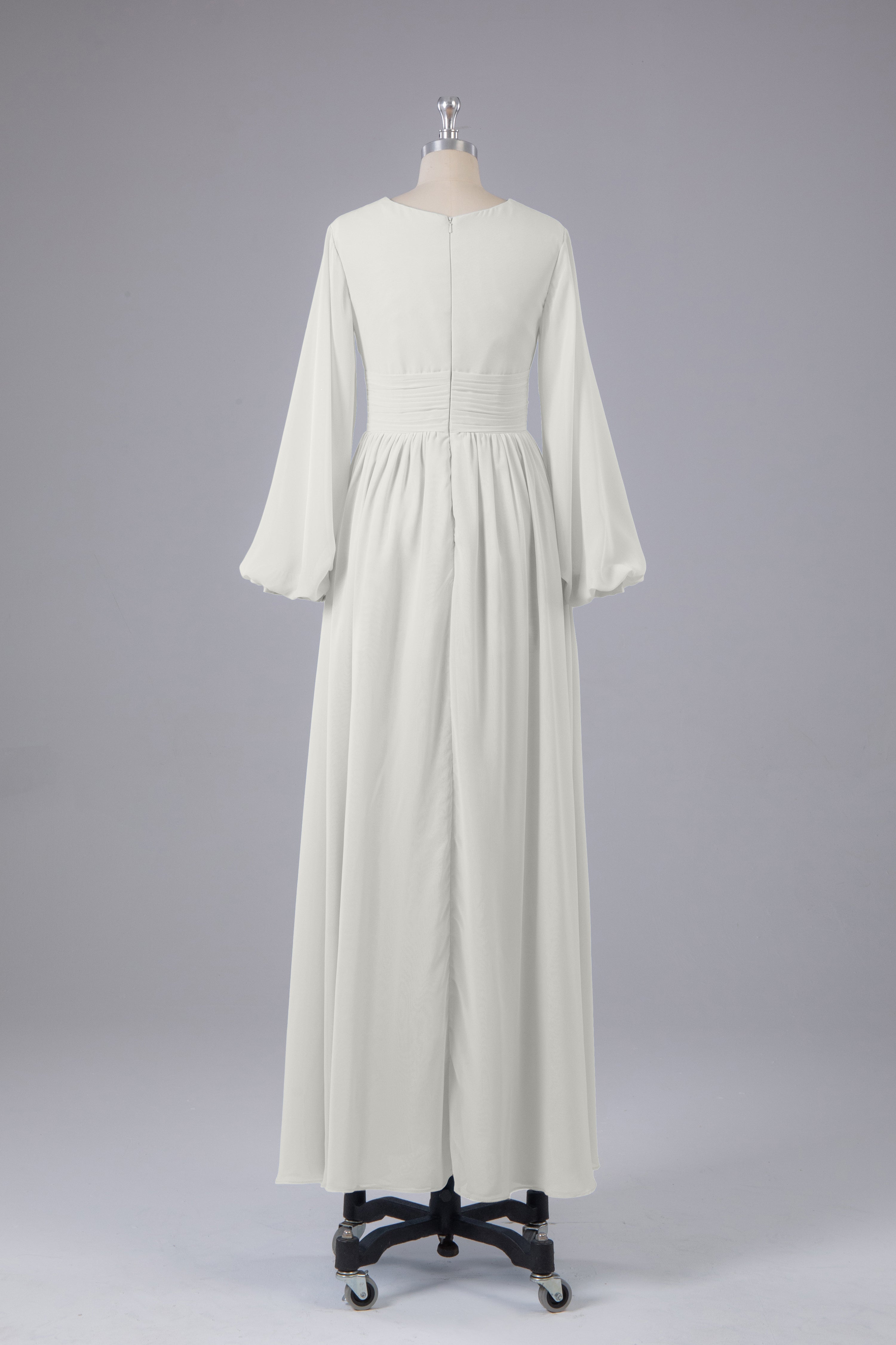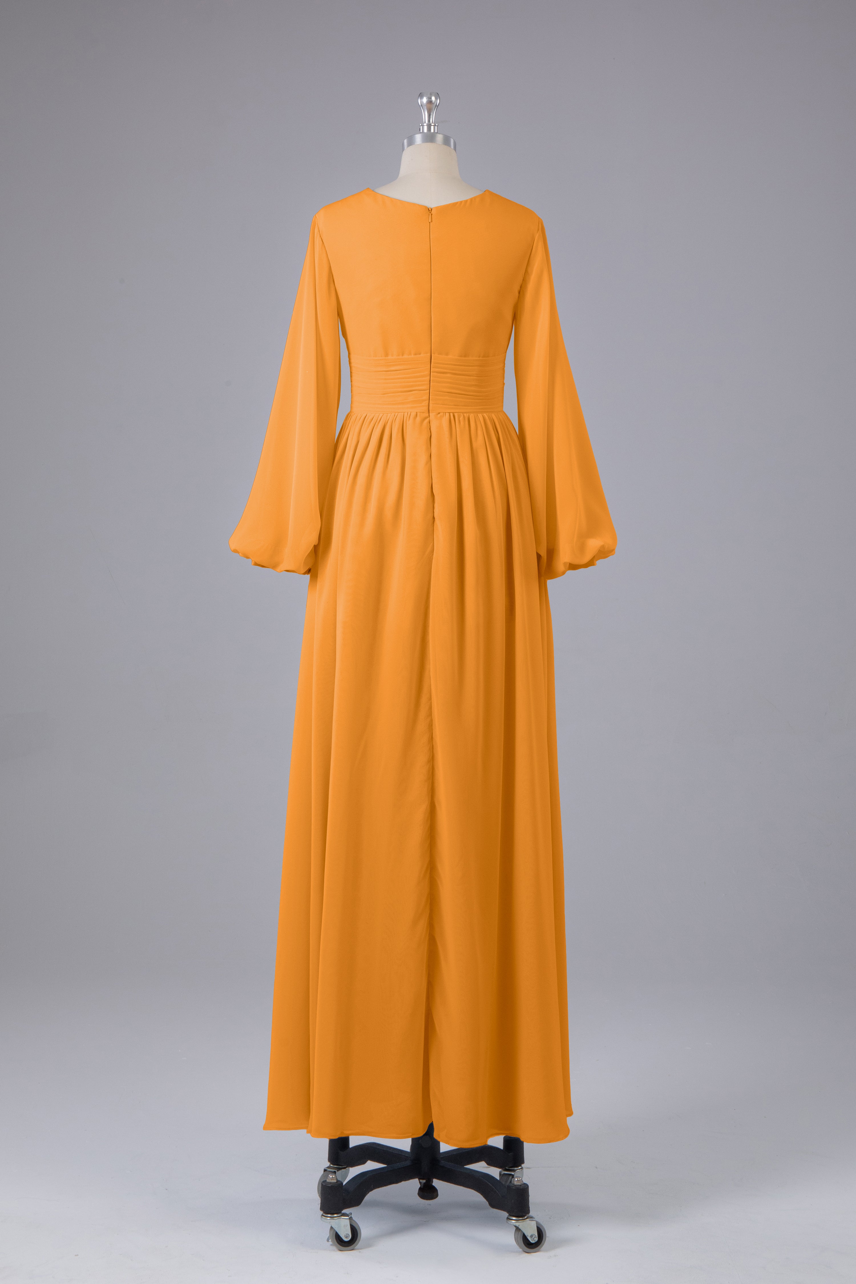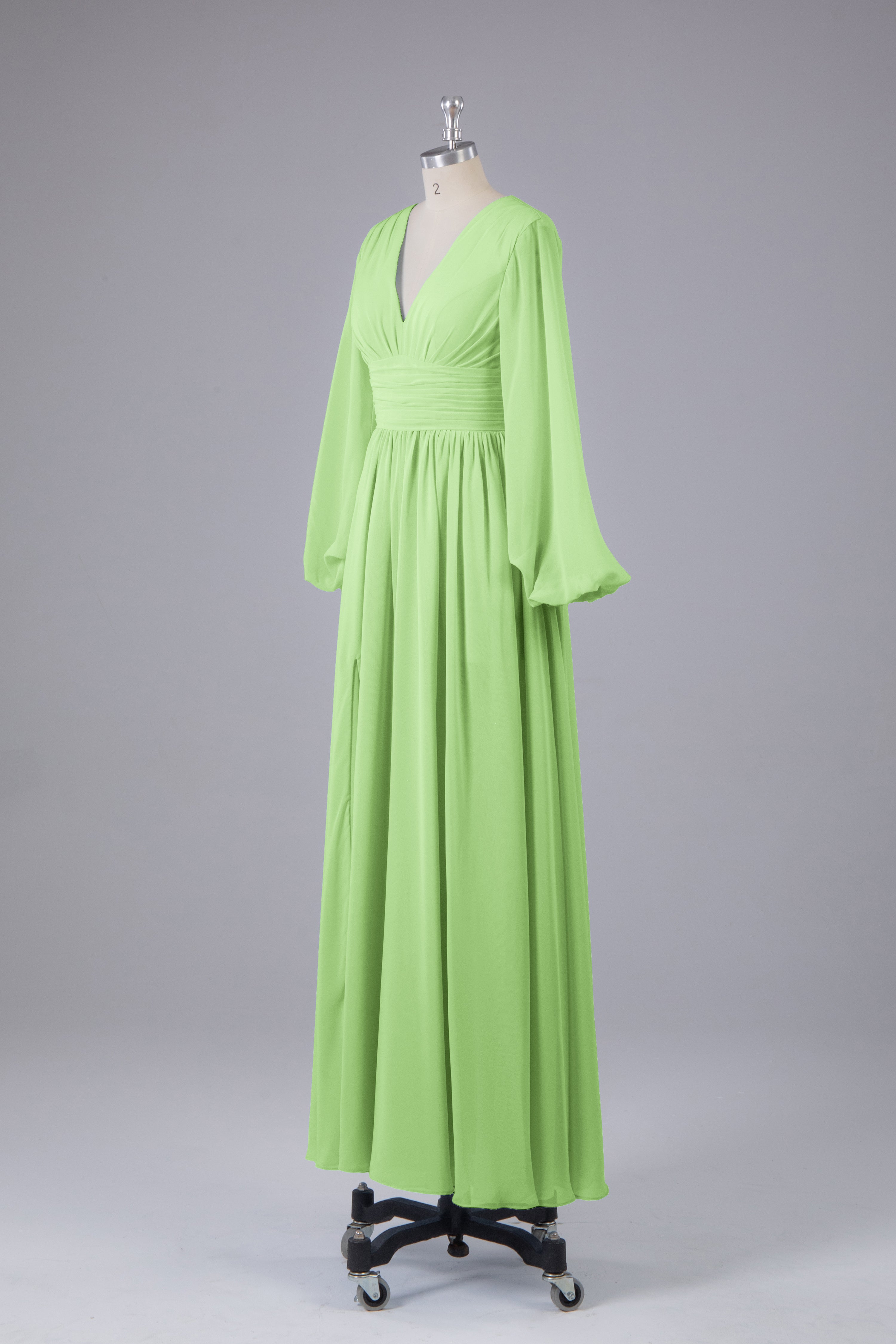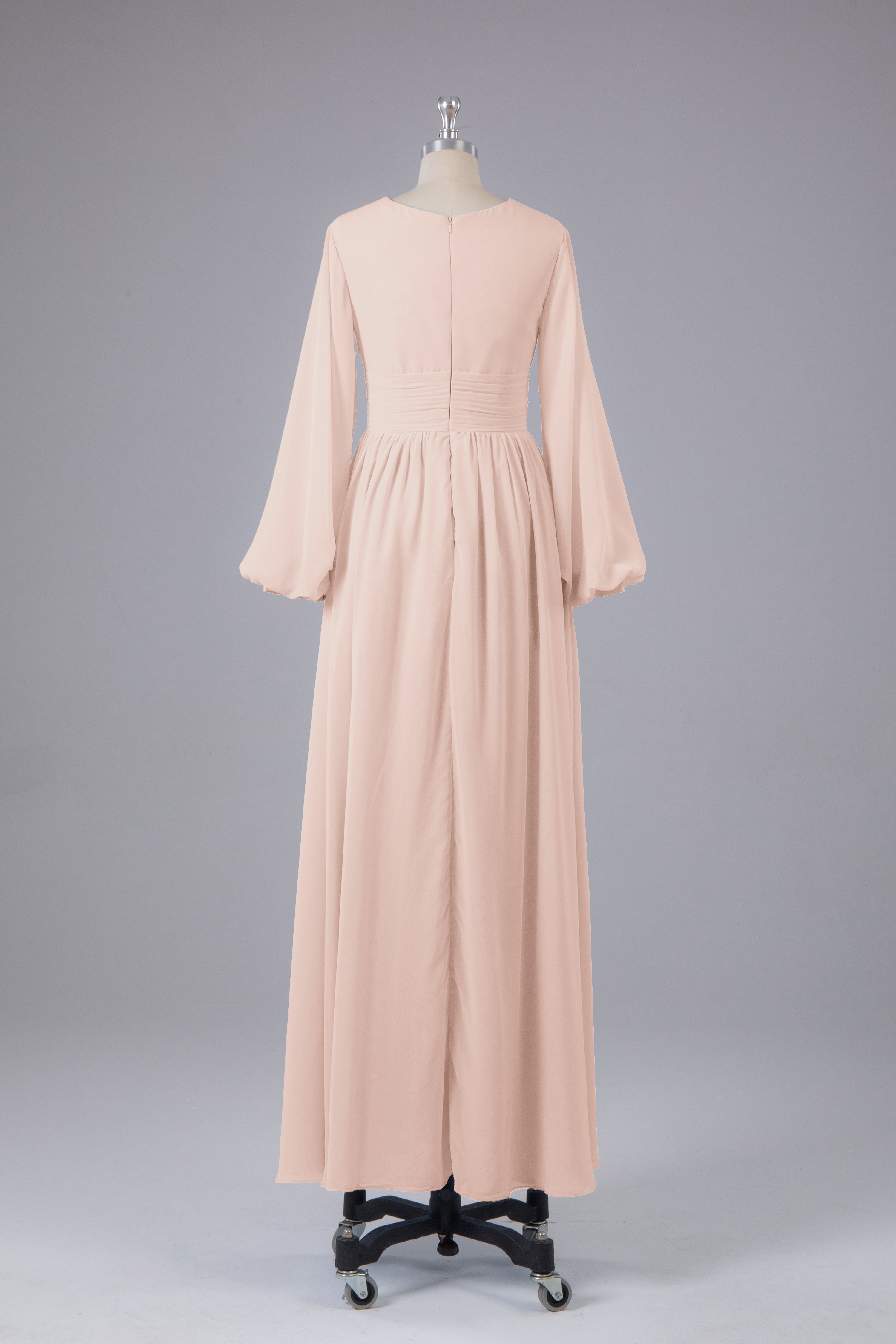 Elegant Long Sleeves V Neck Chiffon Long Bridesmaid Dresses