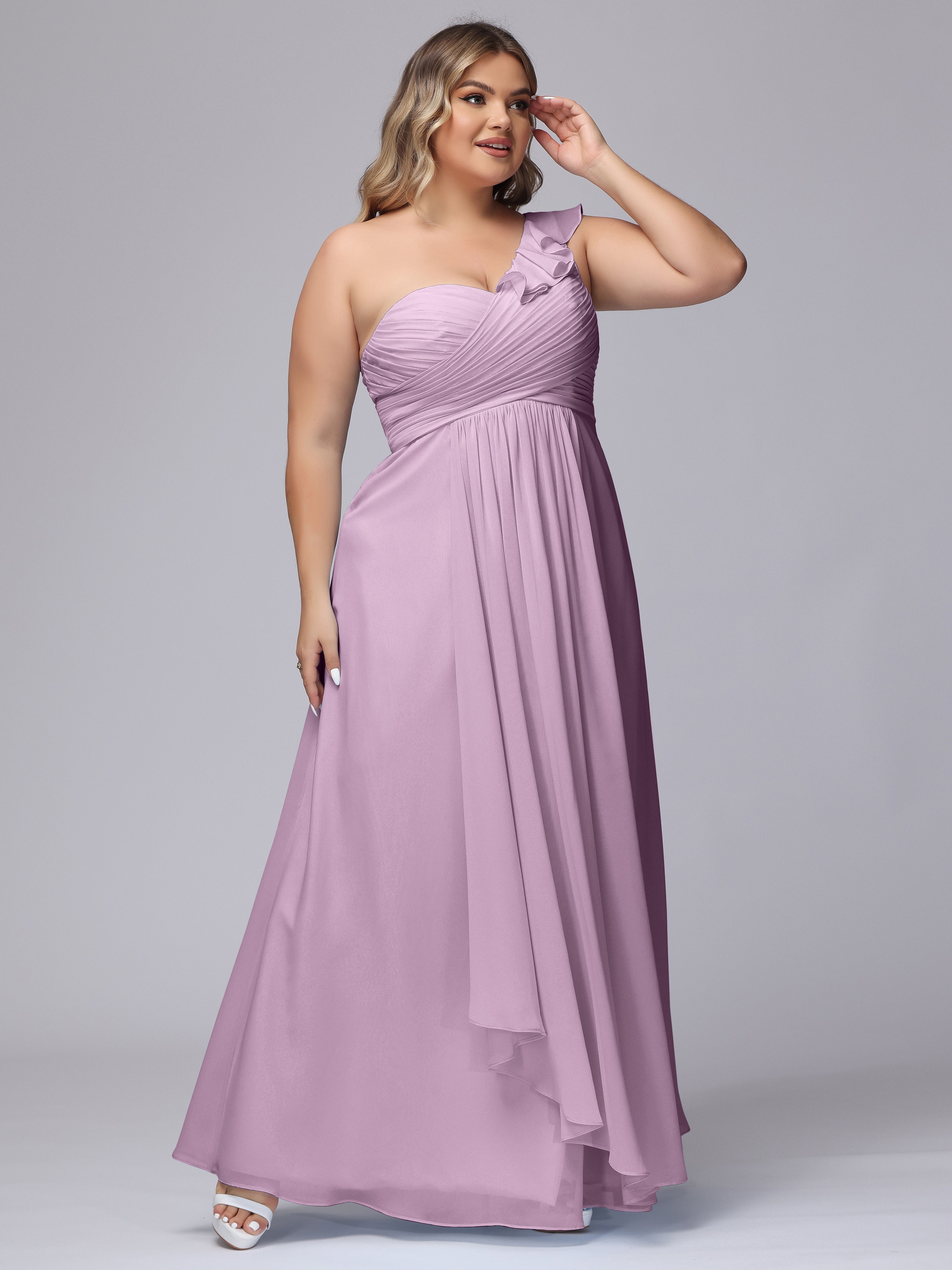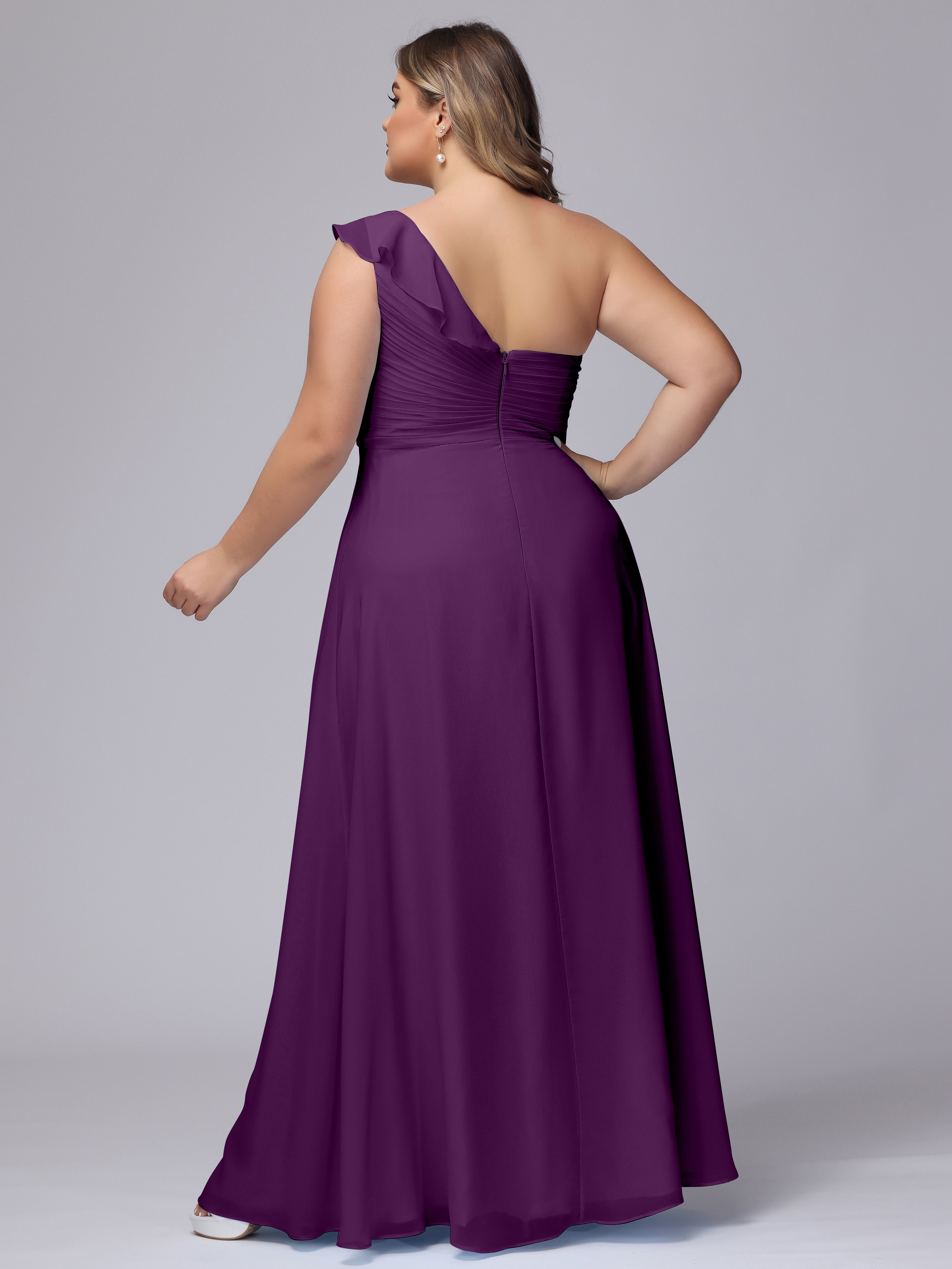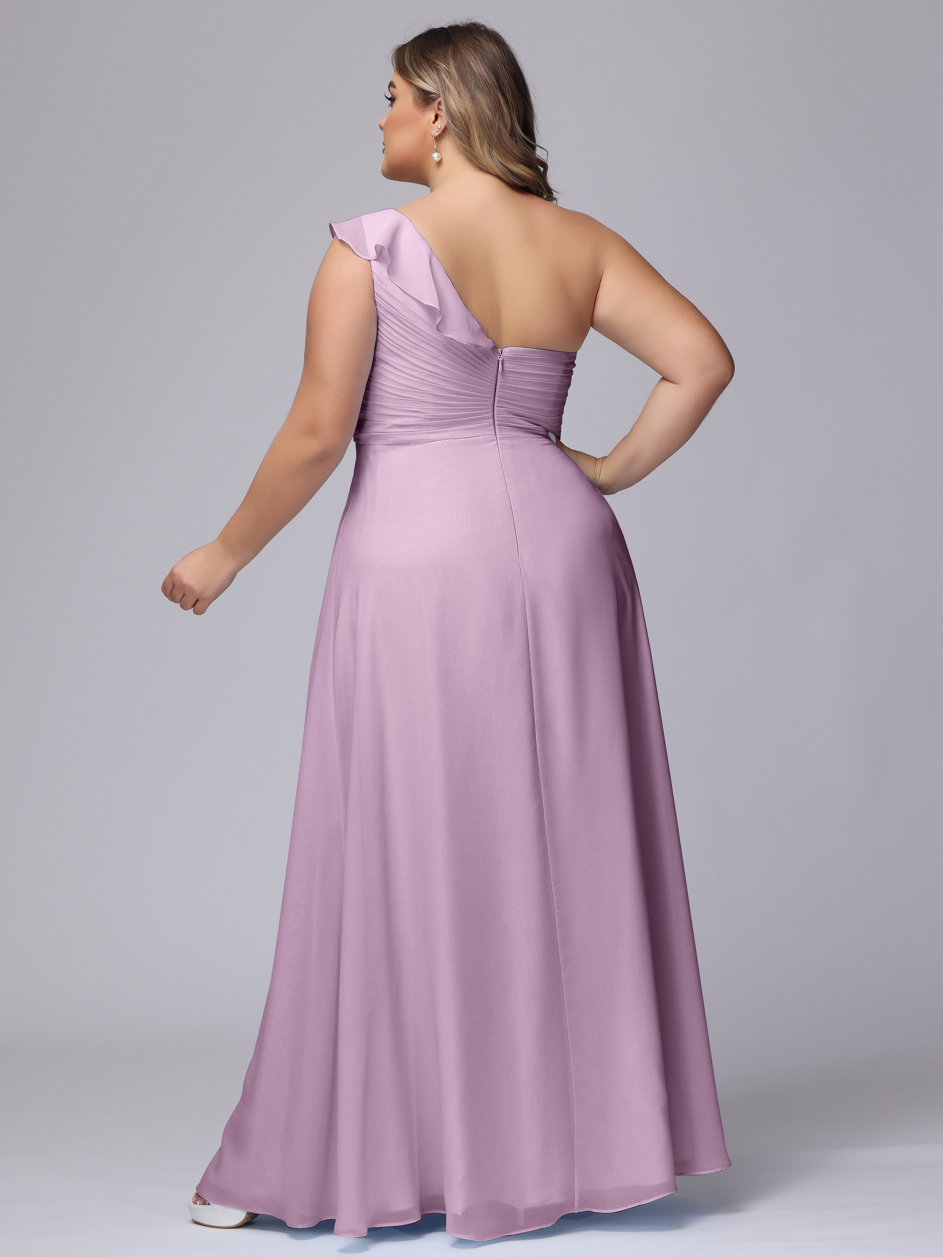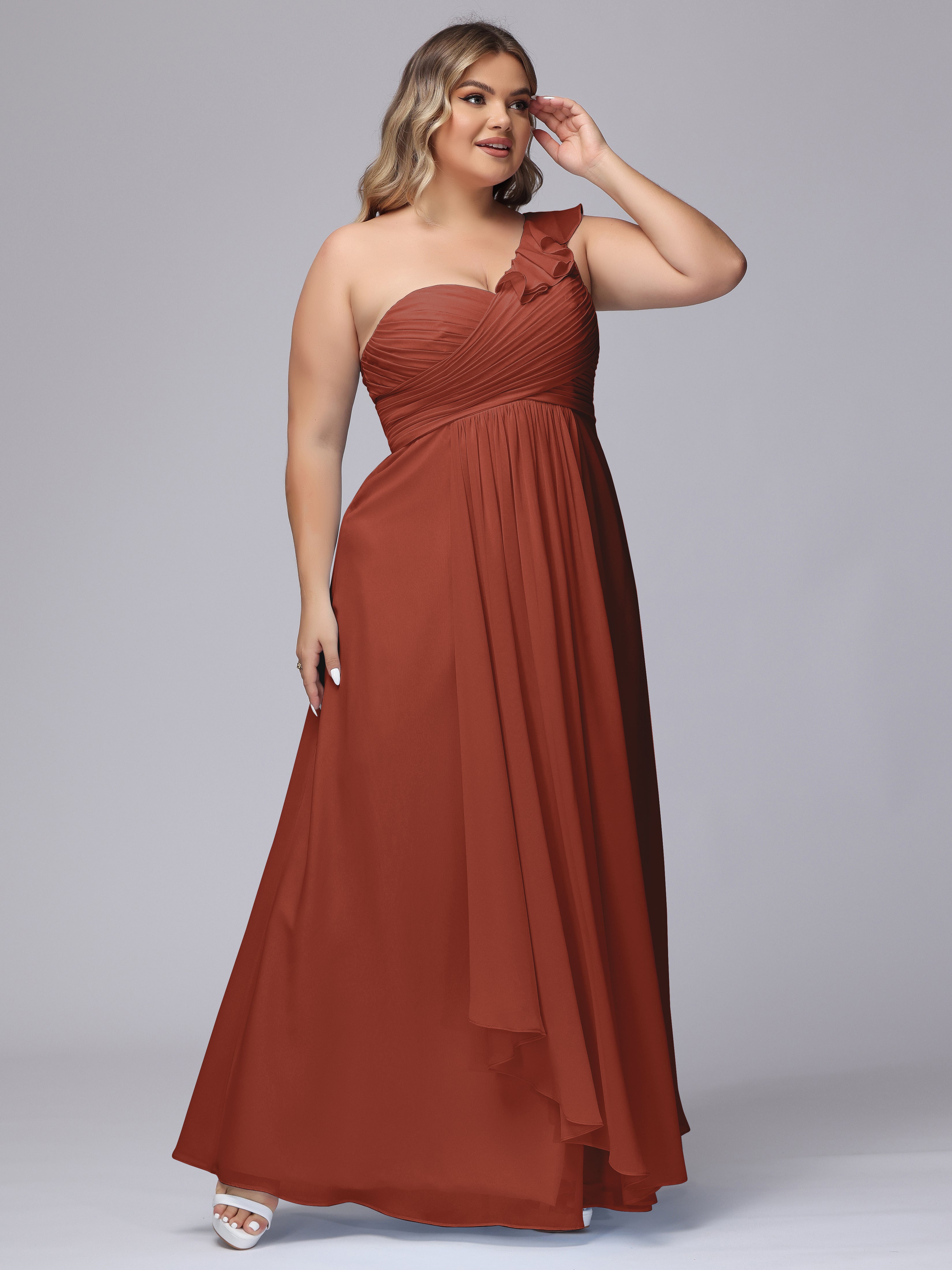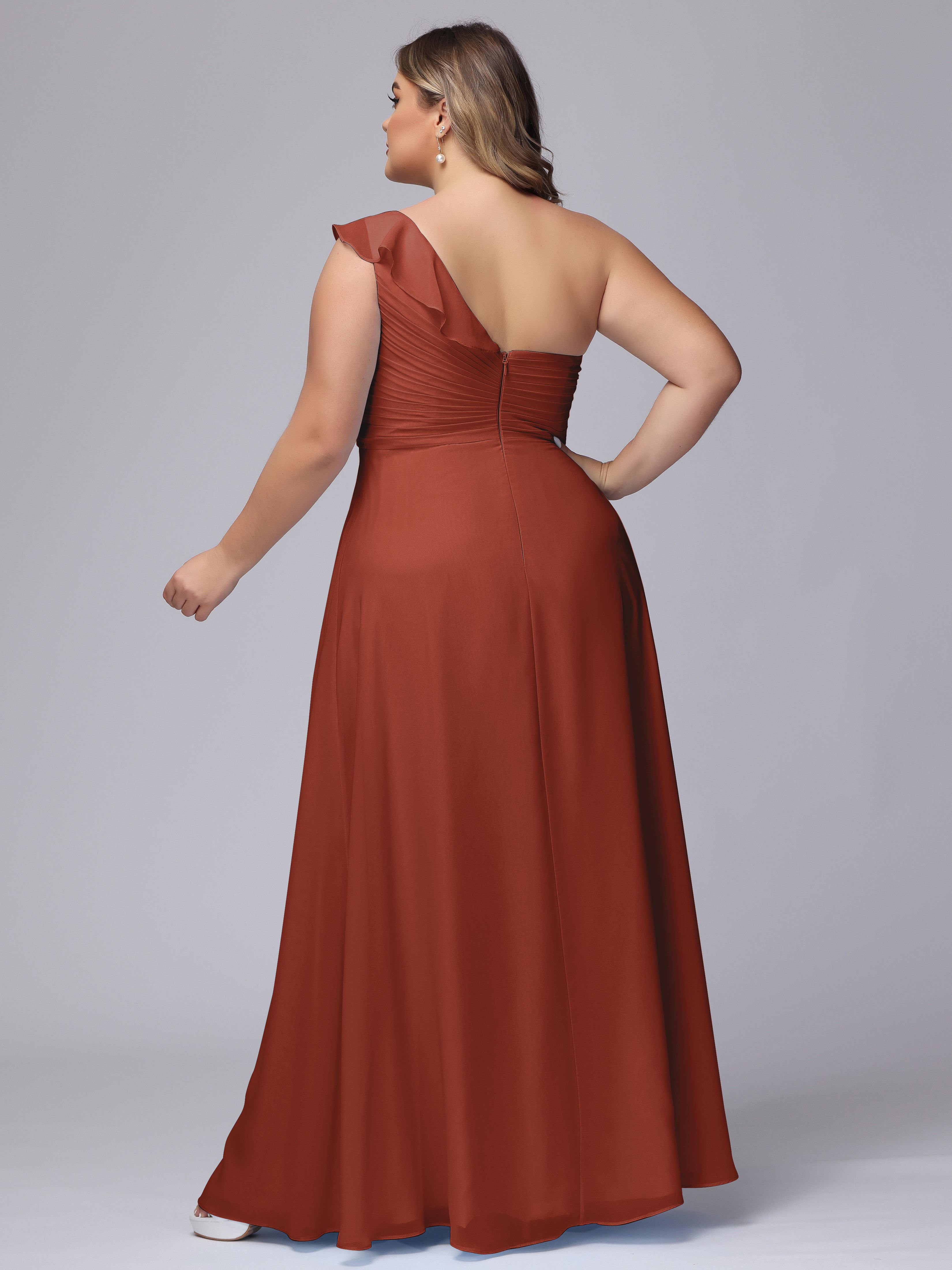 Flowy One-Shoulder Ruffles Chiffon Plus Size Bridesmaid Dresses