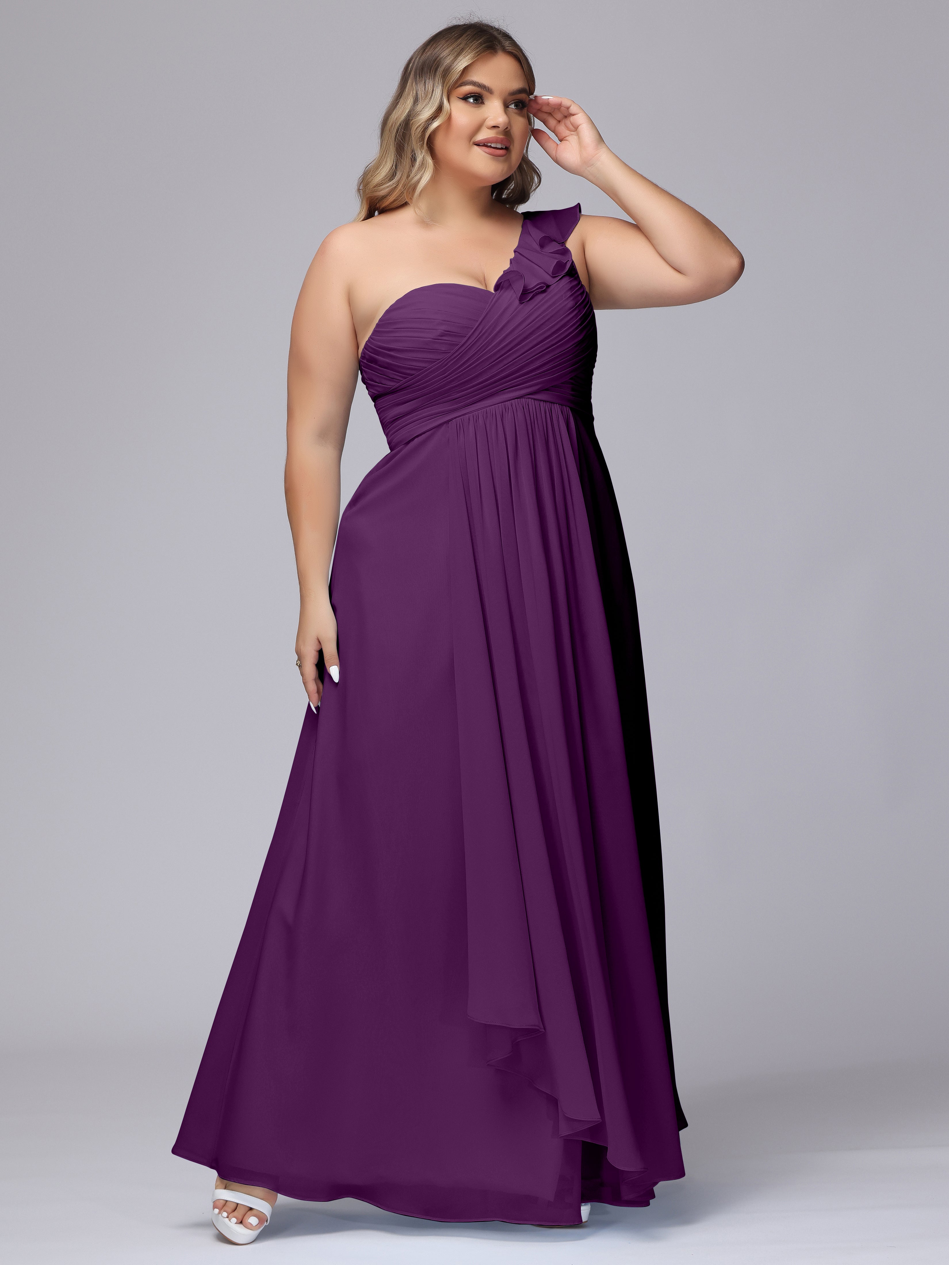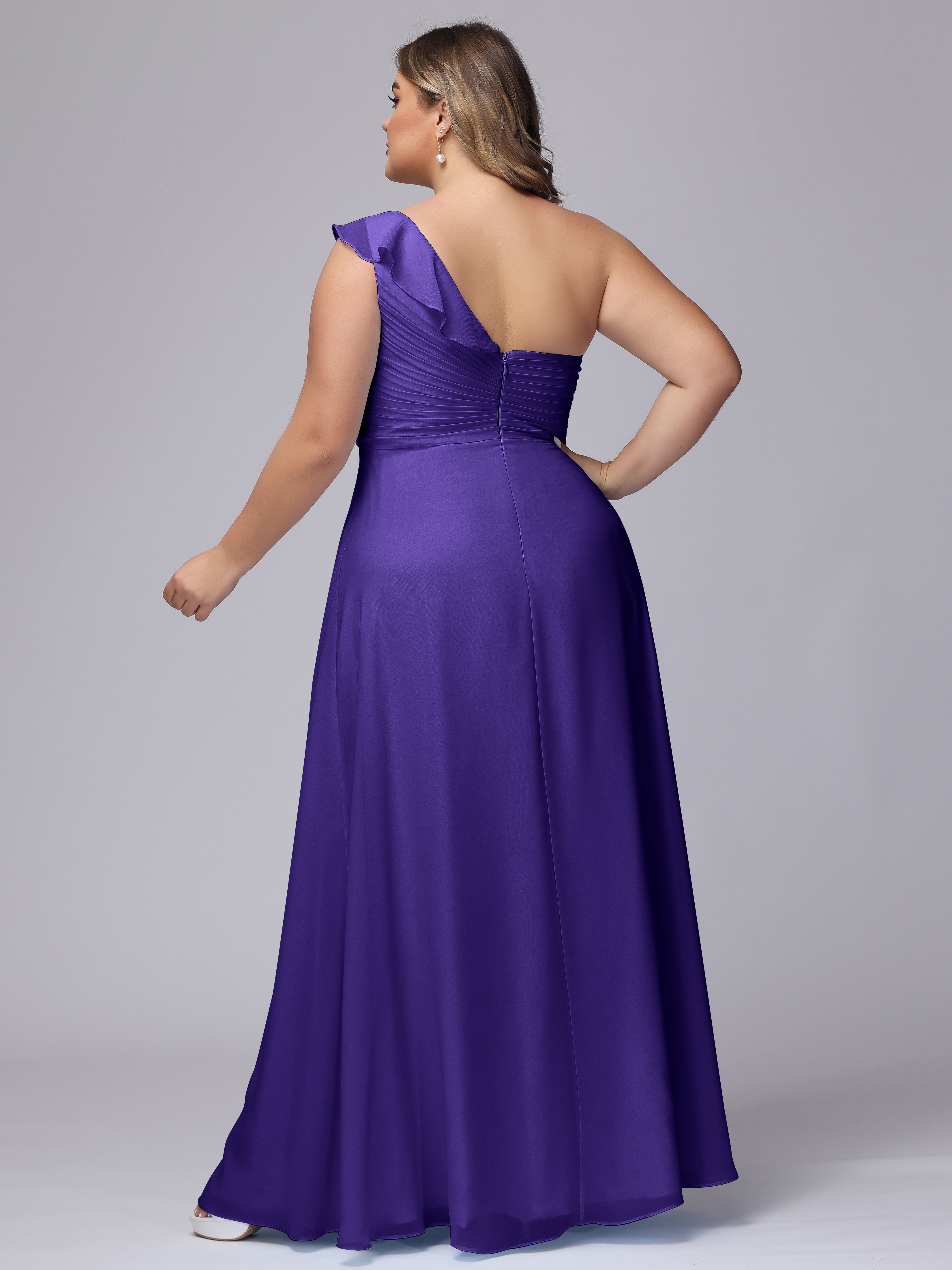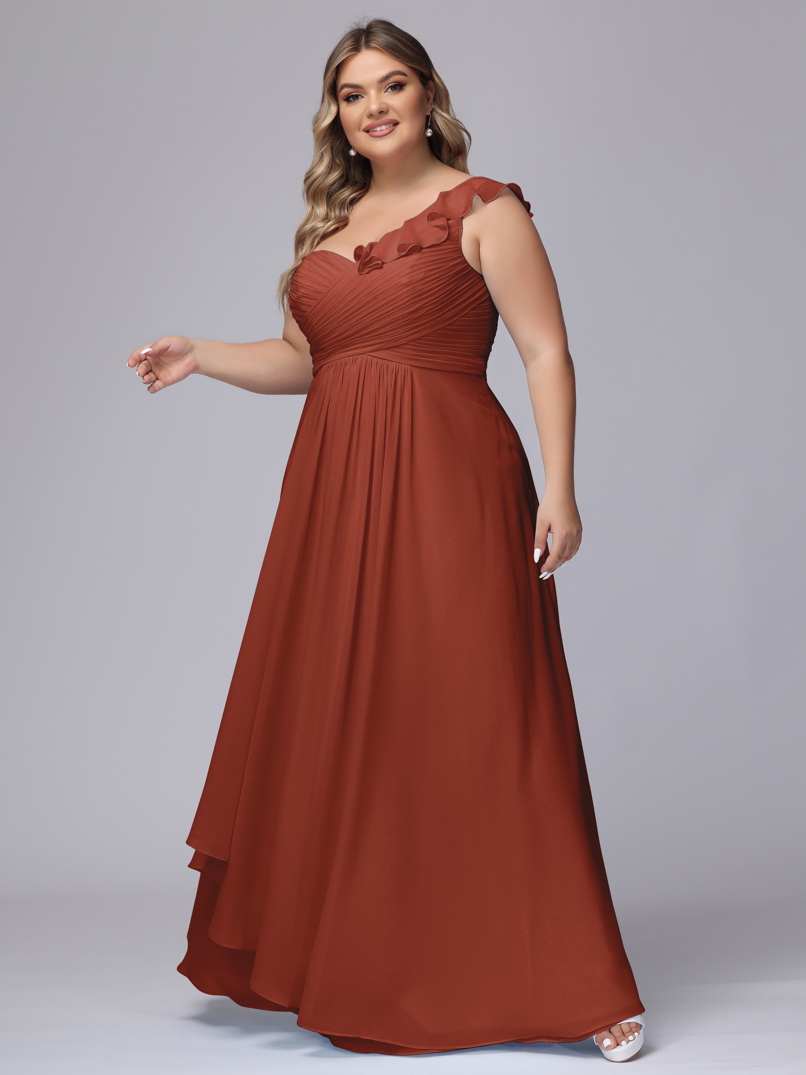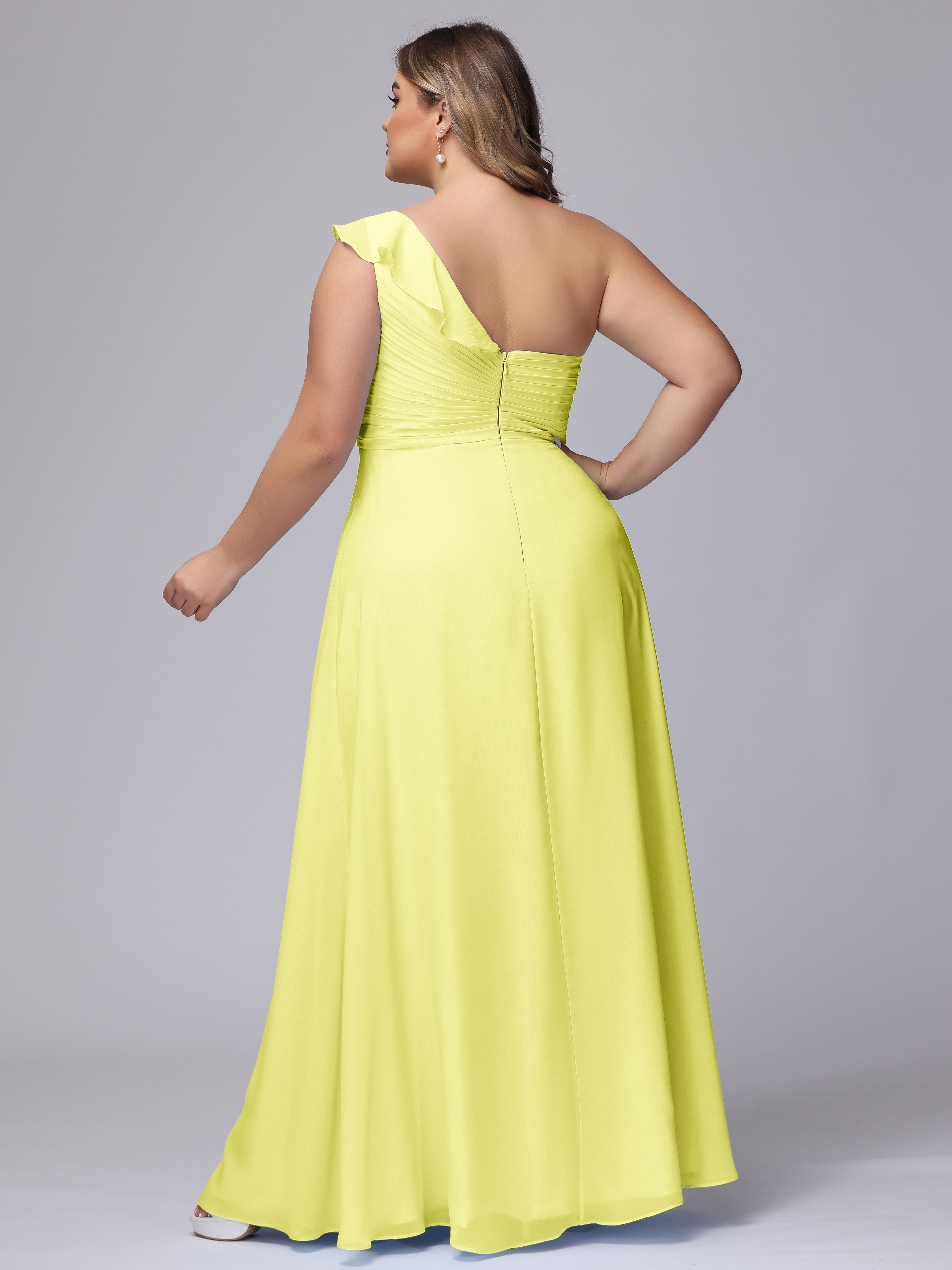 Flowy One-Shoulder Ruffles Chiffon Plus Size Bridesmaid Dresses
