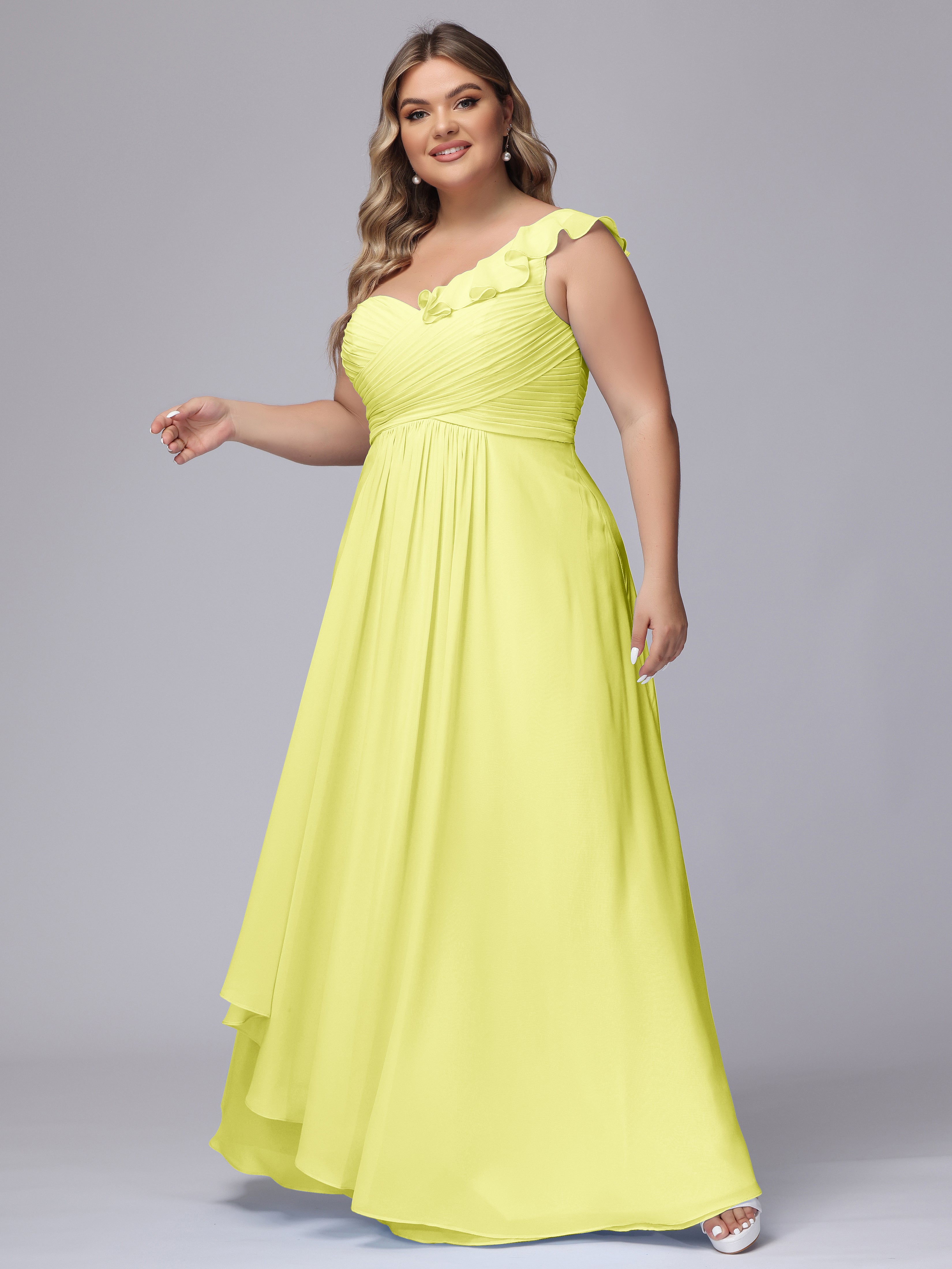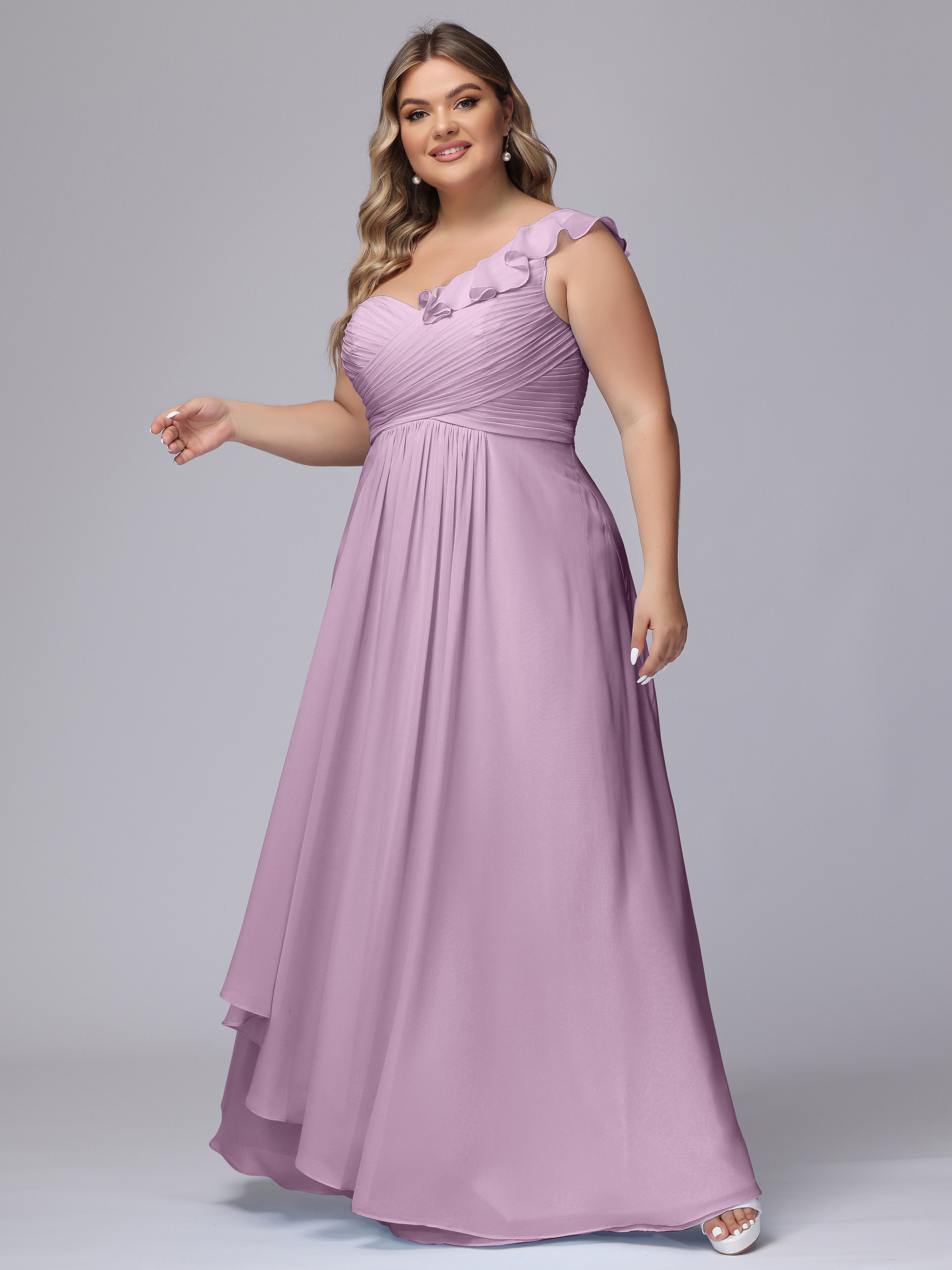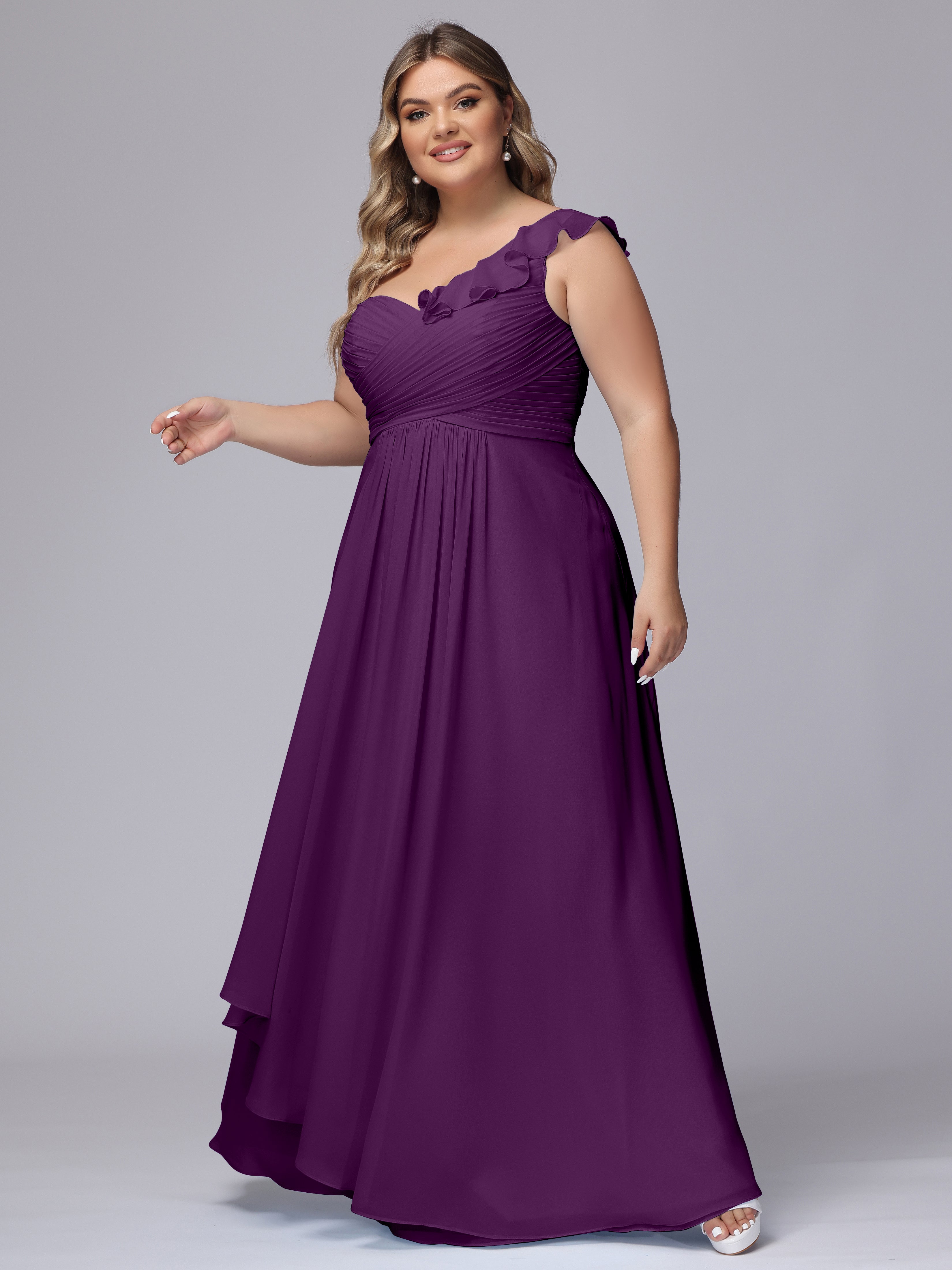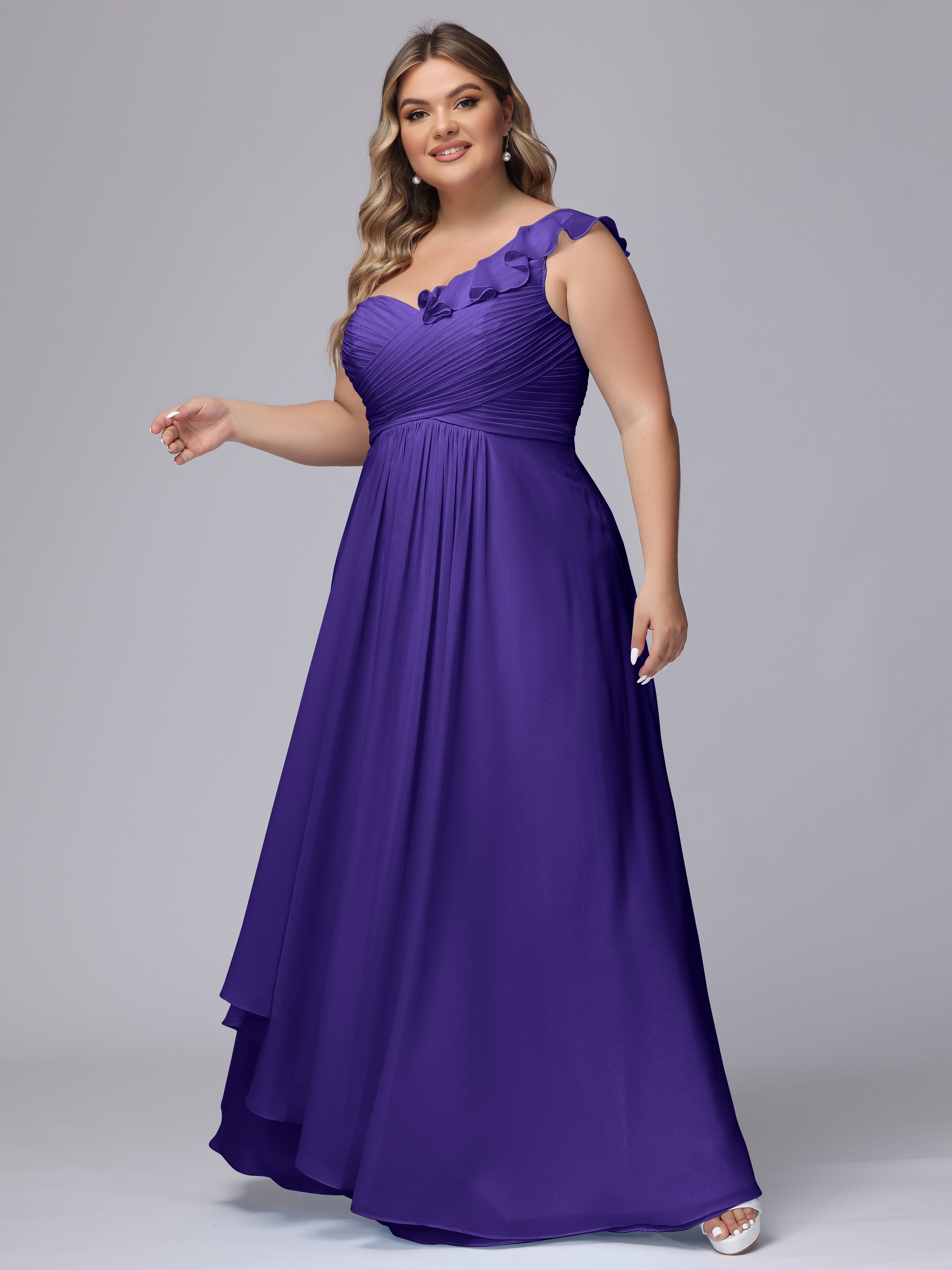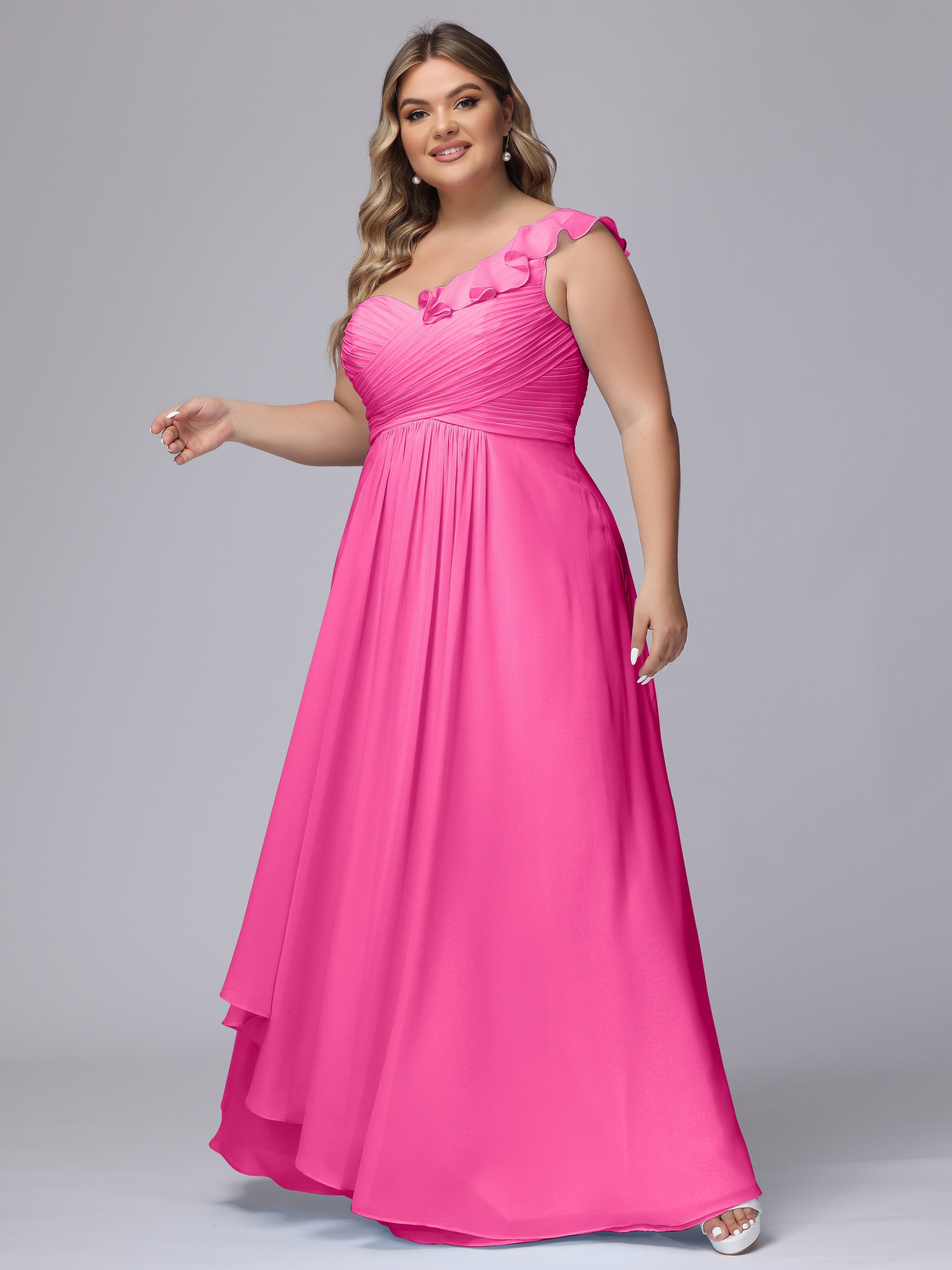 Flowy One-Shoulder Ruffles Chiffon Plus Size Bridesmaid Dresses